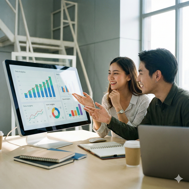 Datenanalyse schafft Klarheit. Wir verwandeln Ihre Rohdaten in wertvolle Erkenntnisse und machen Fortschritt messbar. So wird aus Ihrer Vision eine fundierte Strategie für nachhaltiges Wachstum.
