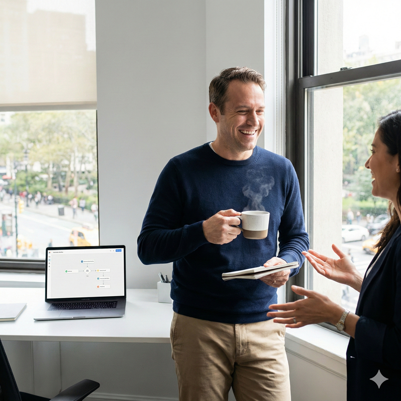 Automation macht den Kopf frei. Wir transformieren Ihre Routineaufgaben in intelligente, selbstlaufende Workflows. So gewinnen Sie wertvolle Zeit für kreative Strategien und menschliche Begegnungen.