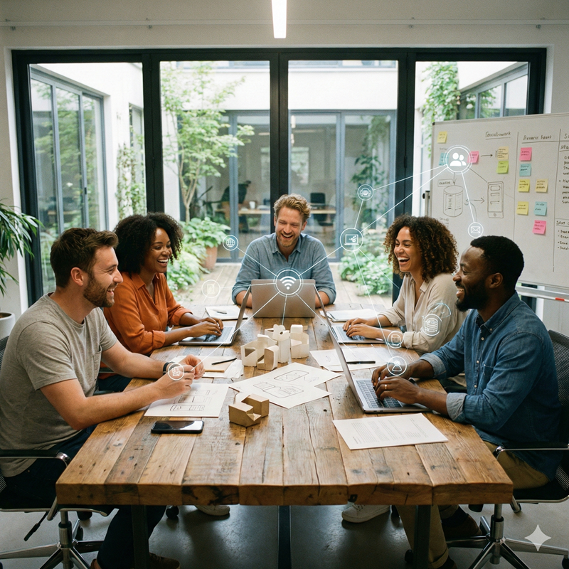Echte Innovation ist Teamarbeit. Wir vernetzen Menschen, Partner und Technik zu einer Einheit, die Barrieren abbaut und Ideen durch Synergien effizient, transparent und gemeinsam zum Erfolg führt.